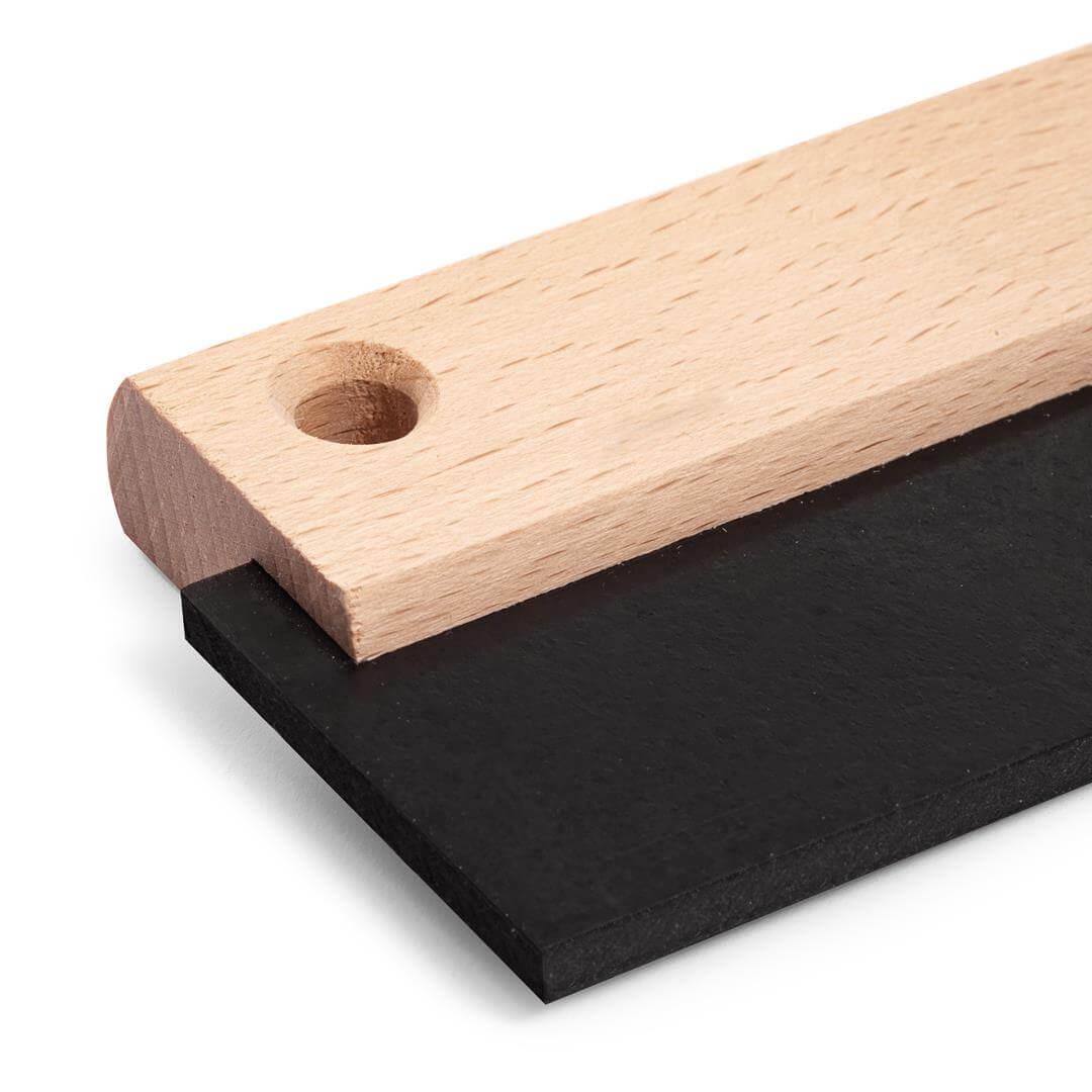 Guma posiada odpowiednią twardość i elastyczność dzięki czemu łatwo nią manewrować, ma się poczucie współpracy z narzędziem. Jest stabilnie osadzona w drewnianym uchwycie i dodatkowo zespolona z nim za pomocą zszywek stolarskich.