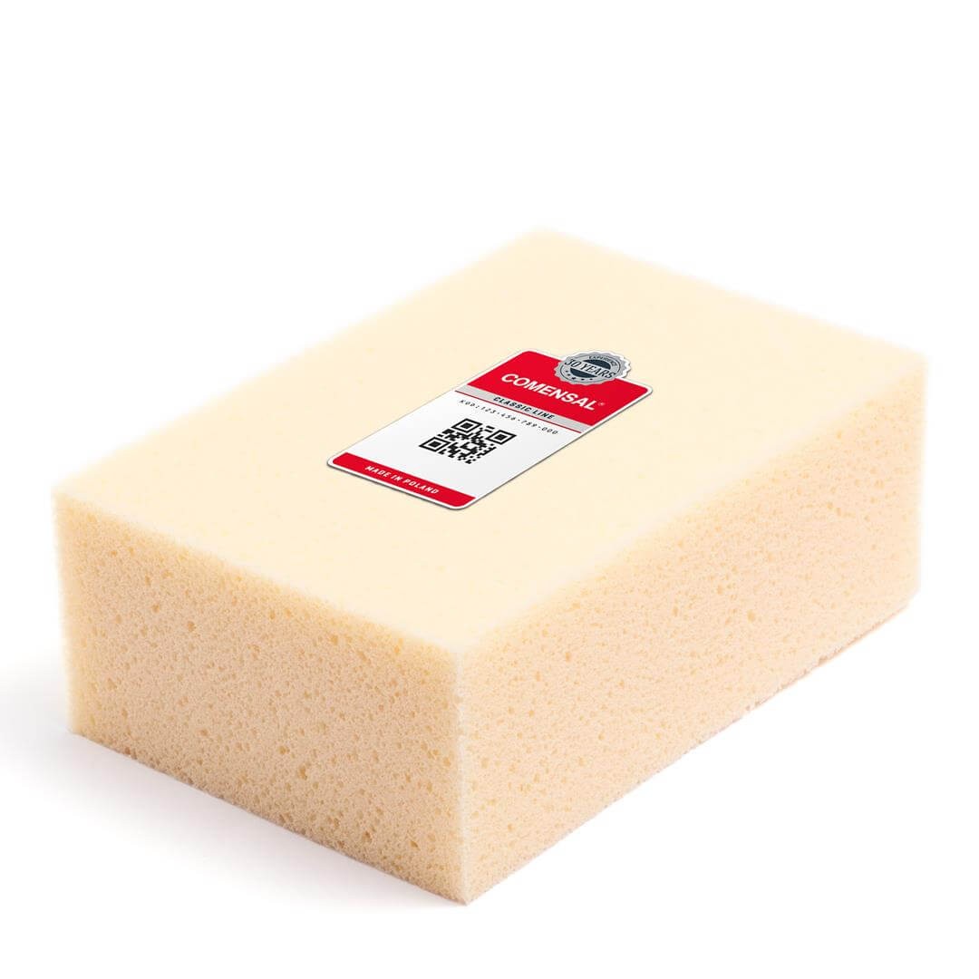 Gąbka glazurnicza HYDROchłonna COMENSAL przeznaczona do mycia płytek po fugowaniu oraz innych prac wymagających skutecznego czyszczenia powierzchni. Ma porowatą strukturę. Dobrze zbiera zanieczyszczenia bez pozostawiania smug. Jest bardzo chłonna, dzięki czemu bez rozchlapywania doczyszcza zabrudzoną powierzchnię. Szybko się ją płucze i odciska z nadmiaru brudnej wody, łatwo uzyskując oczekiwany poziom wilgotności. Można to zrobić nawet przy pomocy jednej dłoni: kształt kostki ma poręczny wymiar i jest obliczony na wygodę użytkowania.
