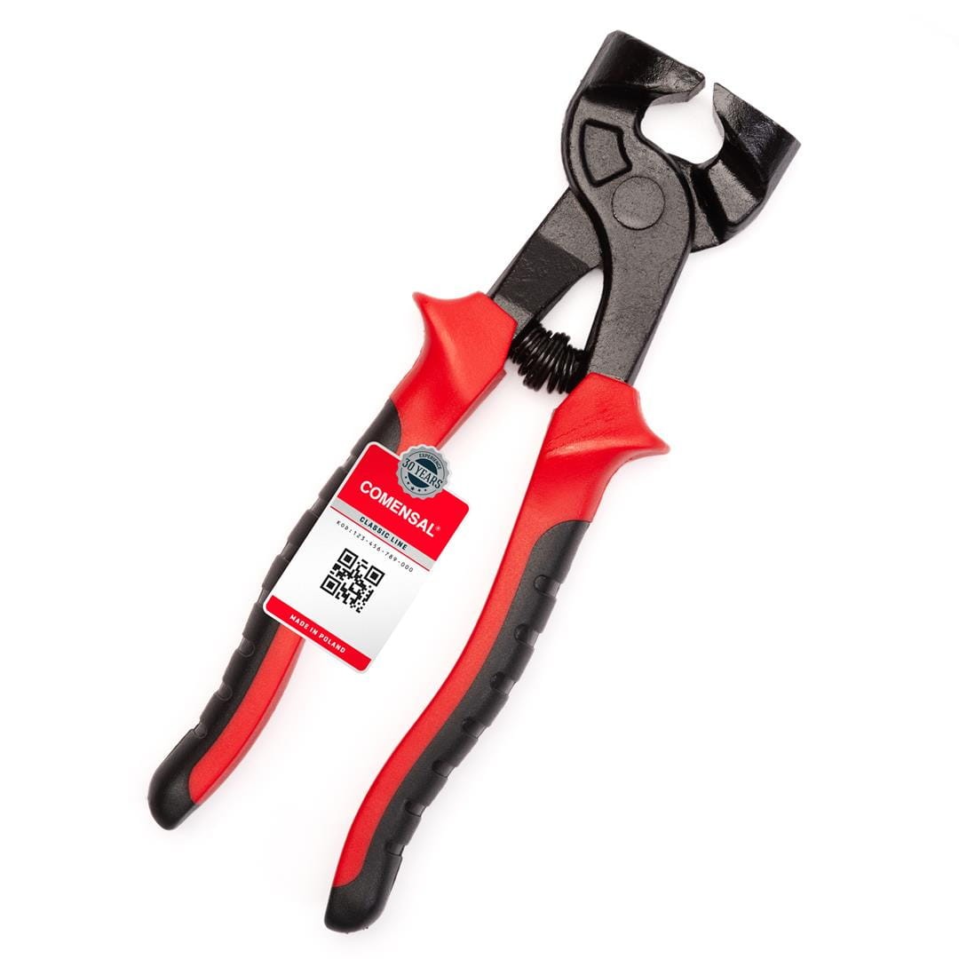 Solidne obcęgi firmy COMENSAL przeznaczone do łamania i wyrównywania cięć w płytkach podczas prac glazurniczych. Podczas zaciskania szczęki narzędzia składają się ze sobą równolegle w linii prostej, ale nie stykają się.