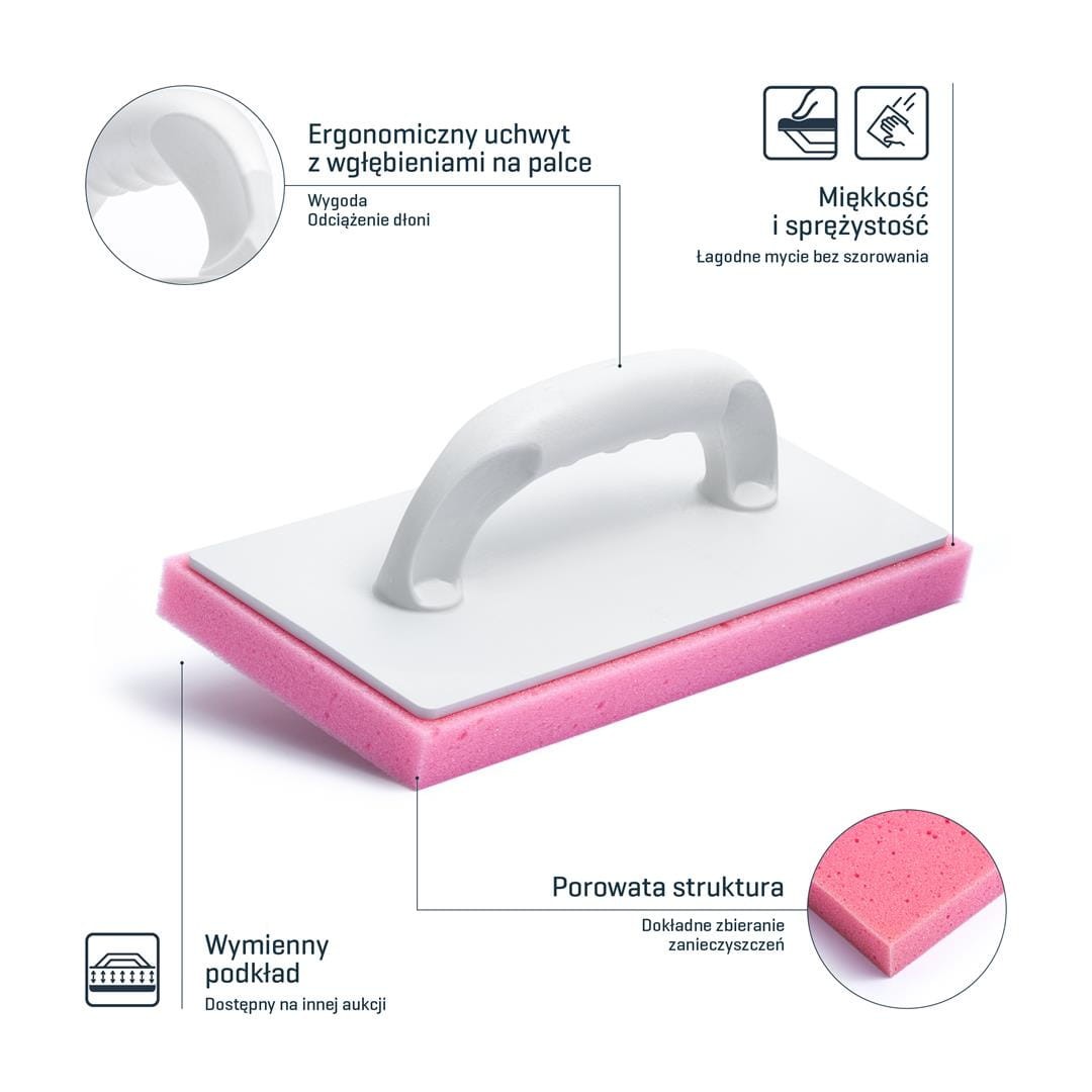 - Dzięki porowatej strukturze dokładnie zbiera z płytek pozostałości po fugowaniu.