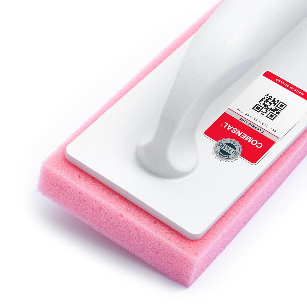Mała paca glazurnicza z gąbką miękką marki COMENSAL przeznaczona do mycia płytek po fugowaniu oraz innych prac wymagających skutecznego, ale delikatnego czyszczenia powierzchni zmywalnych. Ma porowata strukturę, dobrze i gładko zbiera zanieczyszczenia bez szorowania płytek. Łatwo się ją płucze i odciska z nadmiaru wody przy pomocy rolek glazurniczych i kratki.