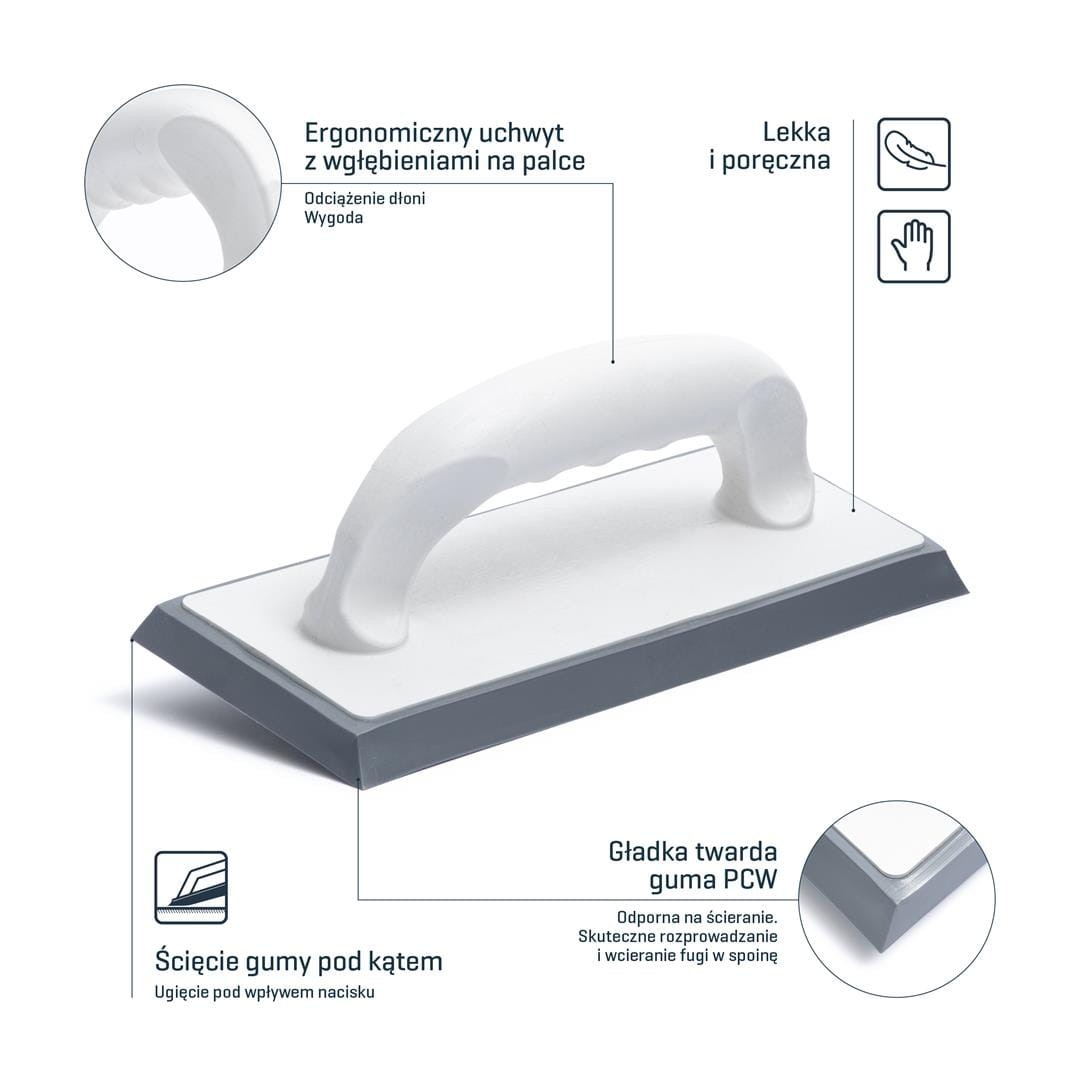 Narzędzie przetestowane i lubiane przez glazurników w najbardziej popularnym rozmiarze. Z uwagi na funkcjonalność i wygodę jest hitem sprzedażowym w tej kategorii produktowej.