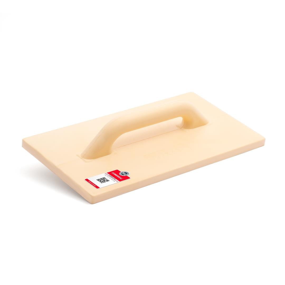 Duża paca poliuretanowa marki COMENSAL do zacierania i wyrównywania tynków o średniej i grubej ziarnistości. Faktura drobnej kratki na spodniej części blatu sprawia, zacieranie masy jest łatwiejsze i efektywniejsze.