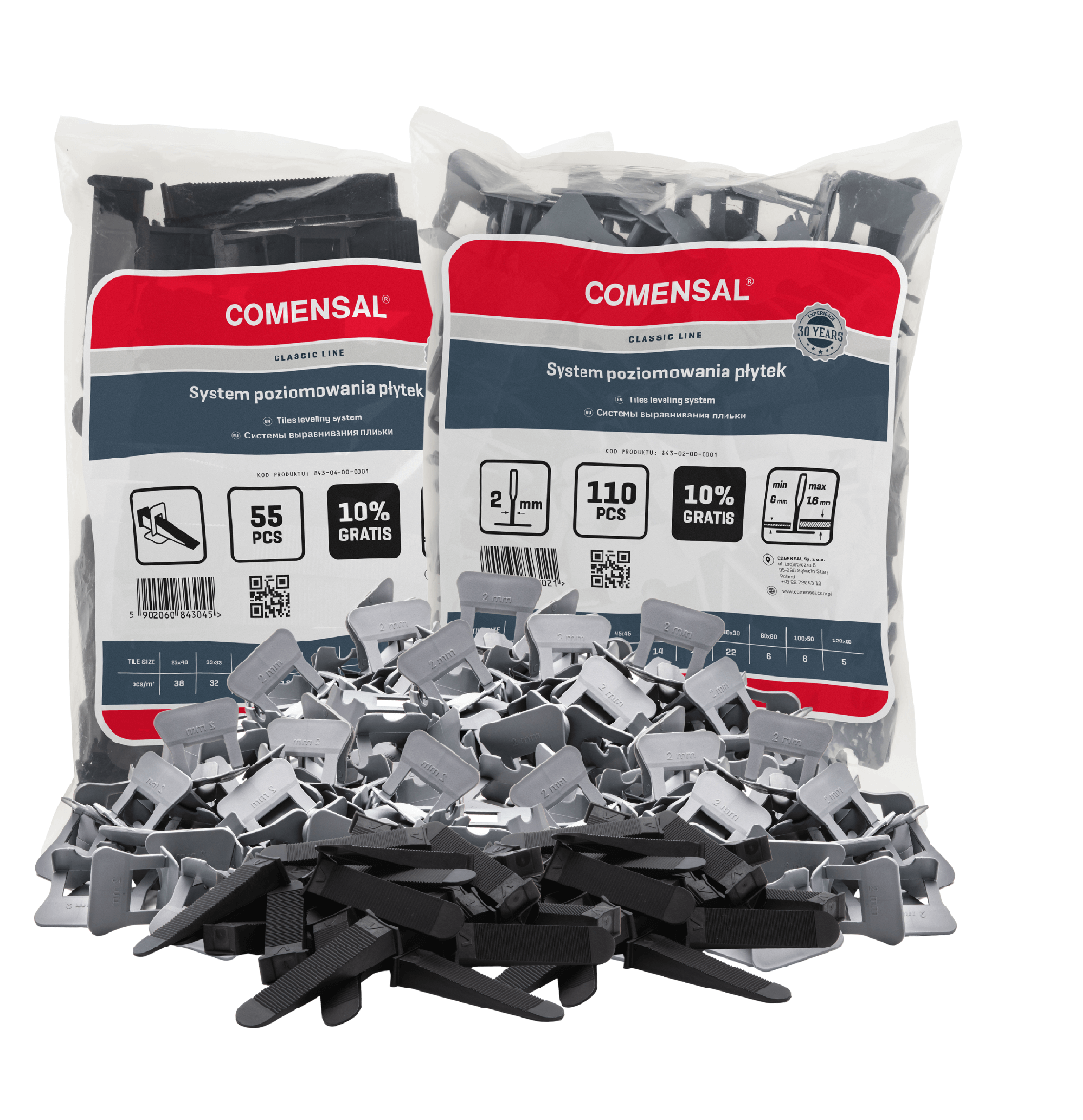 Na innych aukcjach dostępne Klipsy COMENSAL o grubości fugi: 1, 1,5, 2, 3 mm. Dla ułatwienia klipsy mają różną kolorystykę przypisaną do danych rozmiarów