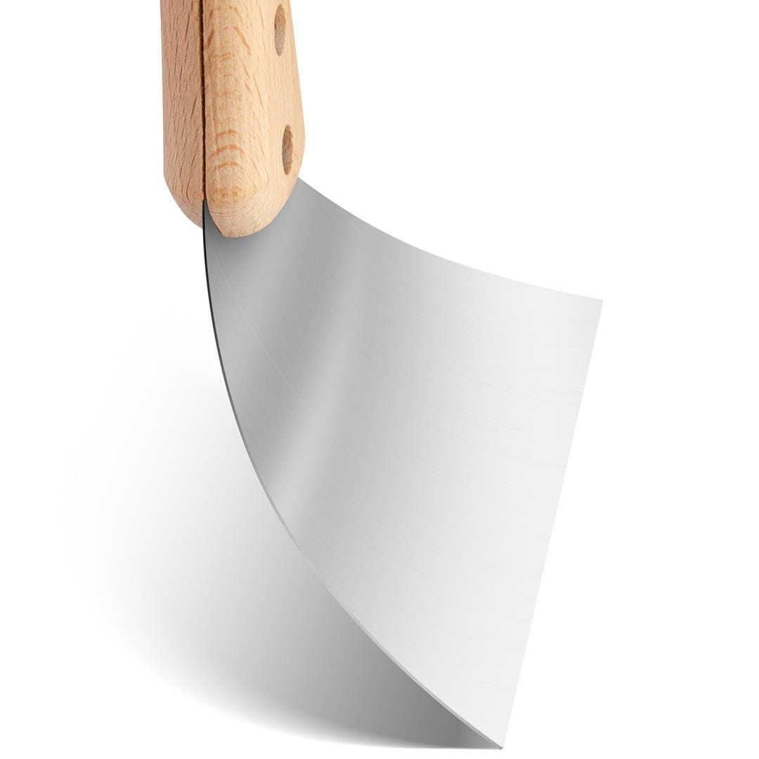 Szpachelka COMENSAL BRAVO 120 mm jest wykonana z wysokogatunkowej stali dzięki czemu jest odporna na działanie rdzy. Praca nią jest efektywna i daje poczucie kontroli nad wykonywaną czynnością. Blacha jest gruba i sprężysta, ścięta na ostro. Drewniany profilowany uchwyt bukowy został wykończony woskiem.