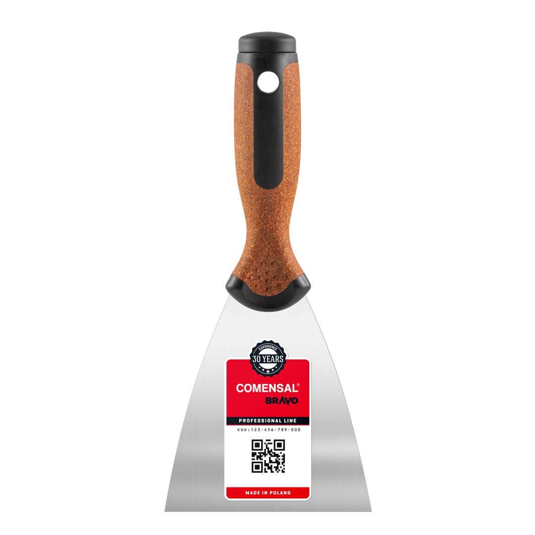Klasyczna szpachelka ze stali nierdzewnej z profesjonalnej linii COMENSAL BRAVO CORK – narzędzie niezbędne podczas większości małych i dużych prac remontowych, malarskich i budowlanych.