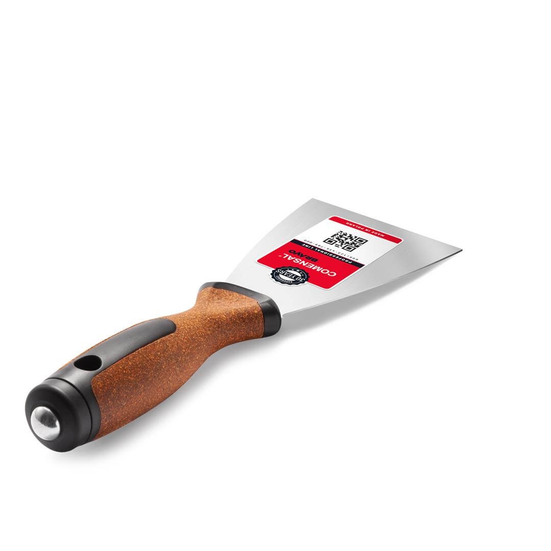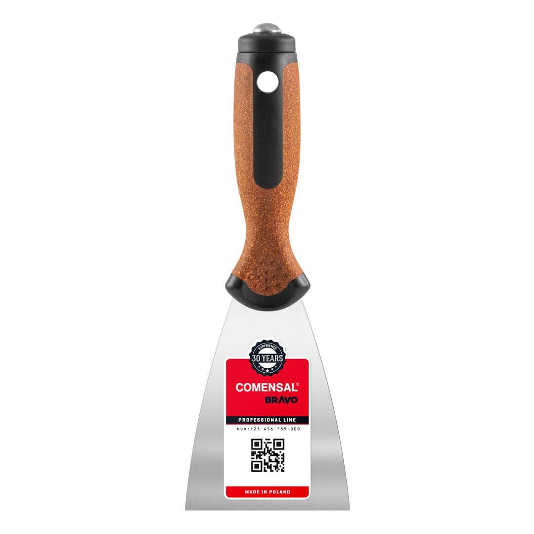 Wysokiej jakości klasyczna szpachelka ze stali nierdzewnej z KORKOWYM uchwytem wyposażonym w NIT z profesjonalnej linii COMENSAL BRAVO CORK – narzędzie niezbędne podczas większości małych i dużych prac remontowych, malarskich i budowlanych.