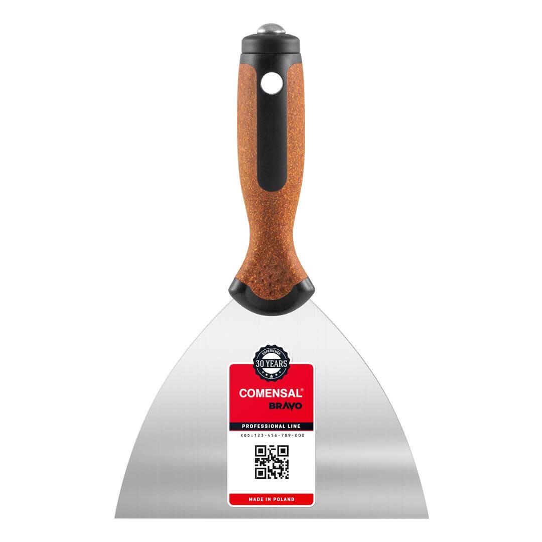 Wysokiej jakości klasyczna szpachelka ze stali nierdzewnej z KORKOWYM uchwytem wyposażonym w NIT z profesjonalnej linii COMENSAL BRAVO CORK – narzędzie niezbędne podczas większości małych i dużych prac remontowych, malarskich i budowlanych.
