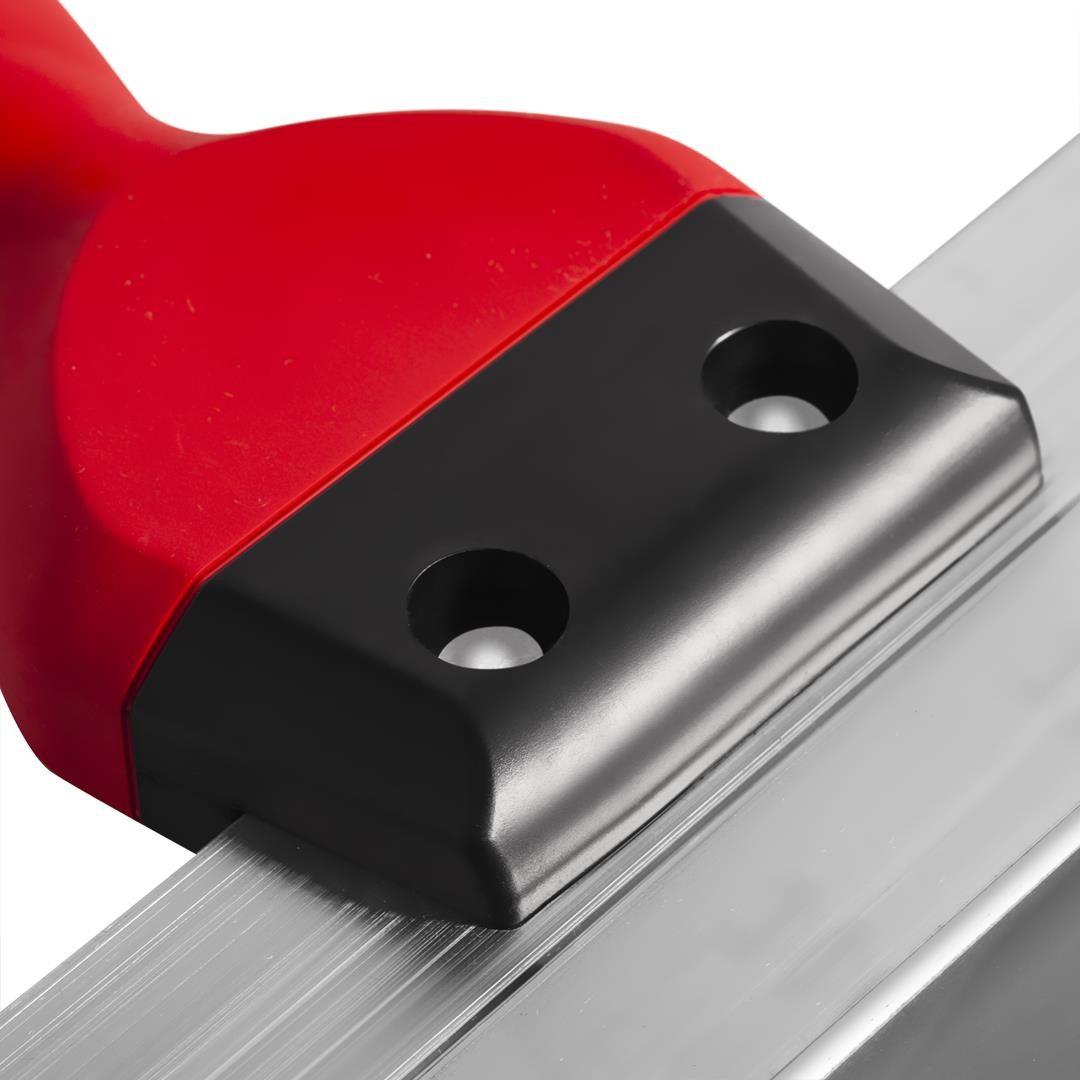 - Zostało trwale osadzone w aluminiowym profilu, dodatkowo wzmocnionym dla uzyskania idealnego usztywnienia narzędzia.
