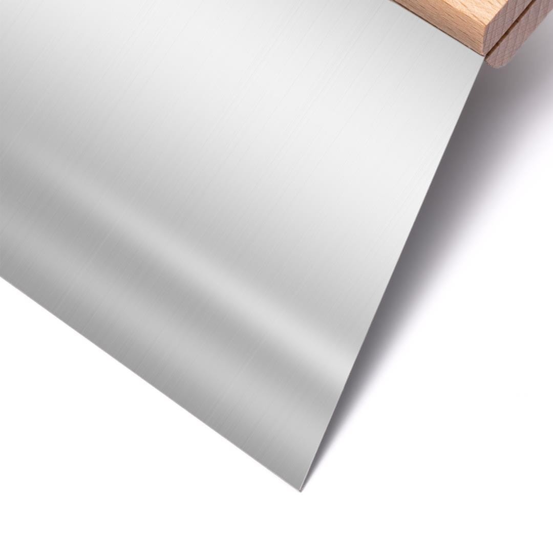 - Blacha o długości podstawy 150mm z wysokogatunkowej stali ma właściwości antykorozyjne. Została mocno osadzona w drewnianym uchwycie bez obawy poluzowania i utraty funkcjonalności.