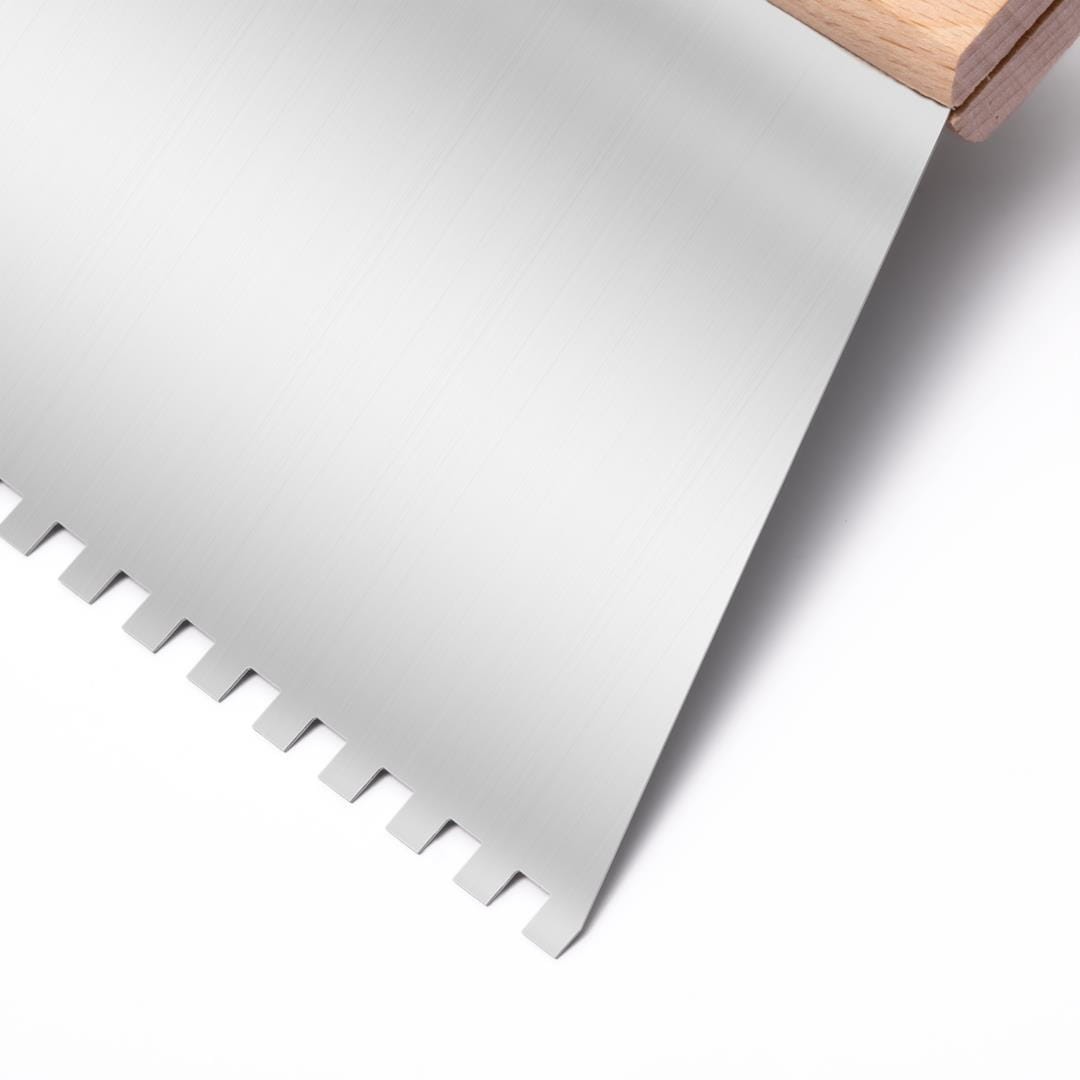 Szpachla trapezowa z zębem 4x4 mm - wymiar podstawy 150 mm - do rozprowadzania kleju na małe płytki