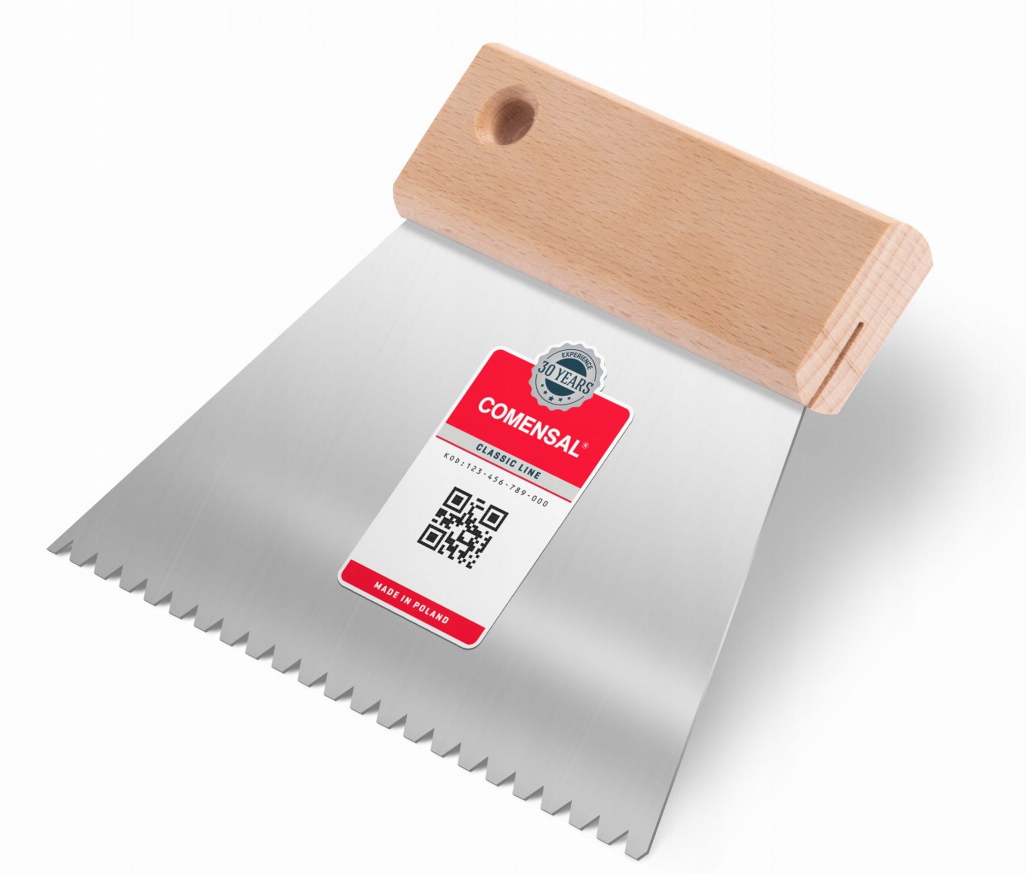 Szpachla trapezowa zębata o trójkątnych wcięciach marki COMENSAL, to lubiane przez wielu glazurników narzędzie. Daje poczucie precyzyjnego panowania nad wykonywaną pracą. Mała, poręczna i lekka o wymiarze trójkątnego wcięcia 6x6mm