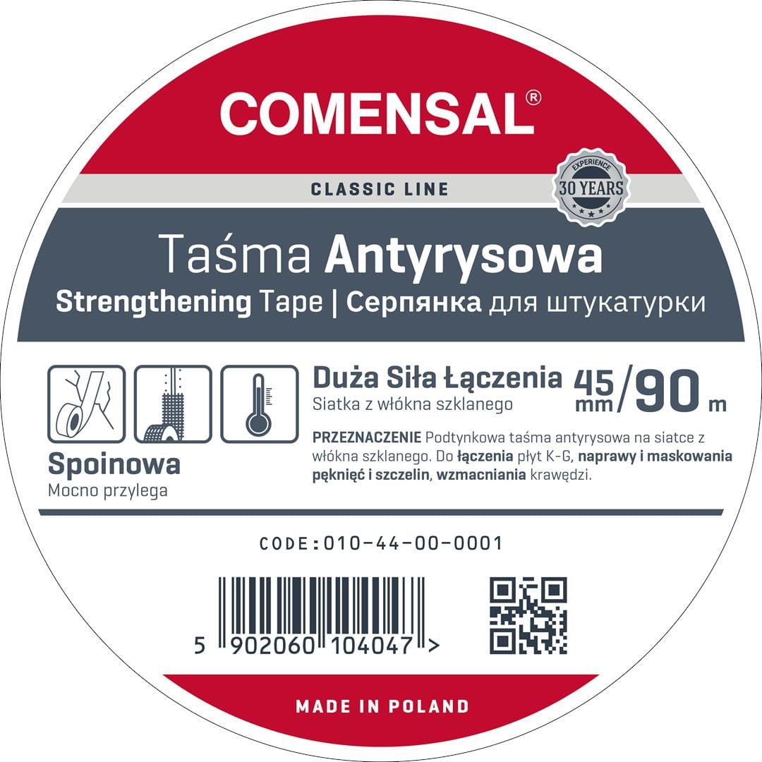 Taśma antyrysowa z włókna szklanego COMENSAL o długości 90m i szerokości 45mm jest wykorzystywana do:
